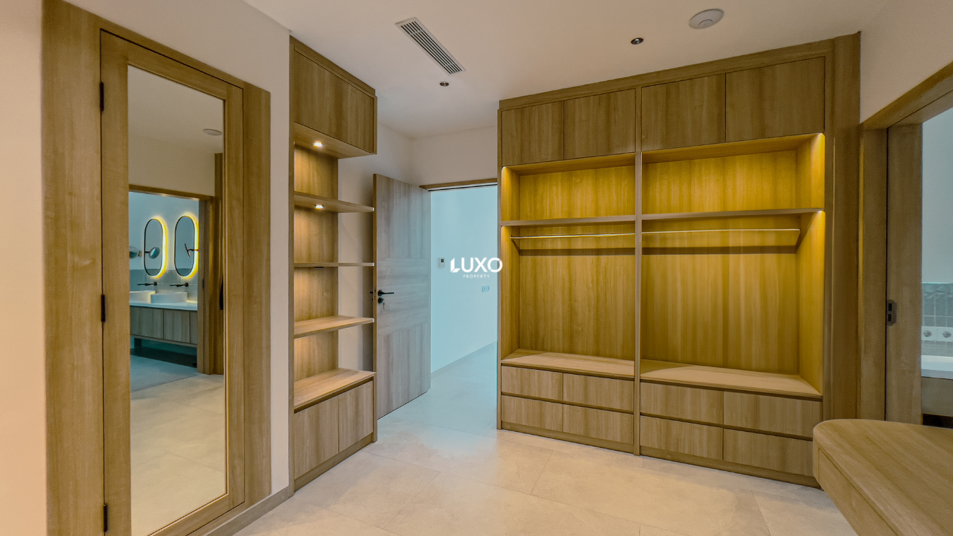Built on 250 m² of land with an impressive 500 m² of living space, the villa is thoughtfully designed with premium materials and cutting-edge smart home technology. The layout features five spacious bedroom suites, including a luxurious master bedroom with a dressing room and ensuite bathroom, along with a dedicated office, TV room, gourmet kitchen with Bosch appliances, and ample storage and laundry facilities.